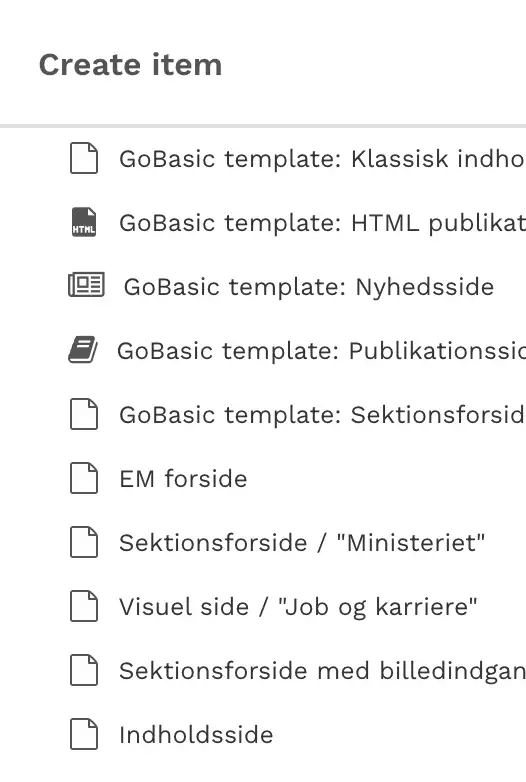 Udover de skabeloner, som i løsningen hedder "GoBasic Templates", har vi udviklet en række særlige skabeloner specielt til jer. Disse skabeloner vil vi beskrive her.