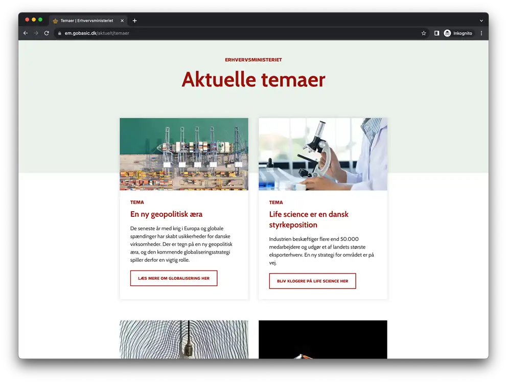 Temasiderne er udviklet til at fremhæve særlige, akutelle temaer såsom: Globalisering, iværksætteri, life-science, tech-giganter mm.
