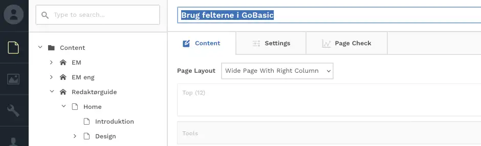 Når du opretter en ny side i GoBasic giver du den en titel i toppen af siden: